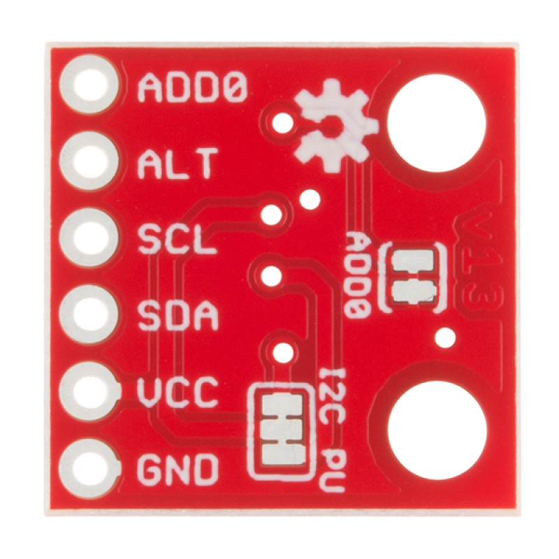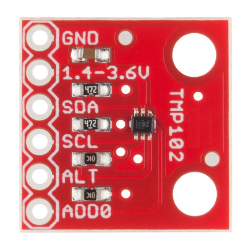 The TMP102 is capable of reading temperatures to a resolution of 0.0625°C, and is accurate up to 0.5°C. The breakout has built-in 4.7kΩ pull-up resistors for I2C communications and runs from 1.4V to 3.6V. I2C communication uses an open drain signaling, so there is no need to use level shifting.