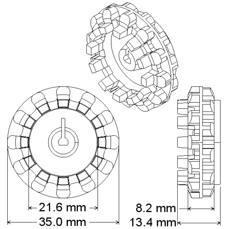 metal gearmotors. These gearmotors are intended to be mounted onto the side of the hub with the protruding teeth.