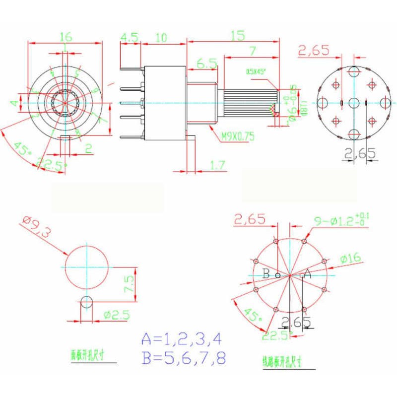 Plastic 16mm Rotary Switch 1 Pole 5 Positions