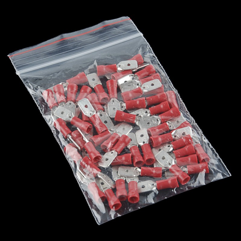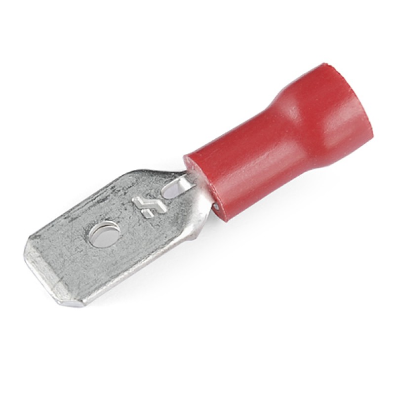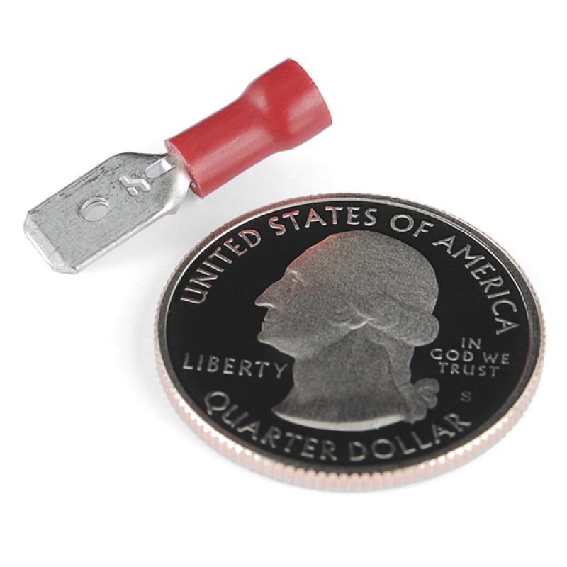 These Male quick-disconnects are about ¼" wide and can be crimped onto 22-16 AWG wire. Mating connectors can be found in the related items.