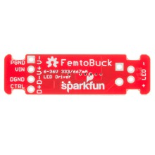 This is the FemtoBuck, a small-size single-output constant current LED driver. Each FemtoBuck has the capability to dim a single high-power channel of LEDs from 0-350mA at up to 36V while the dimming control can be either accessed via PWM or analog signal from 0-2.5V. This board is based off of the PicoBuck LED Driver, developed in collaboration with Ethan Zonca, except instead of blending three different LEDs on three different channels the FemtoBuck controls just one.