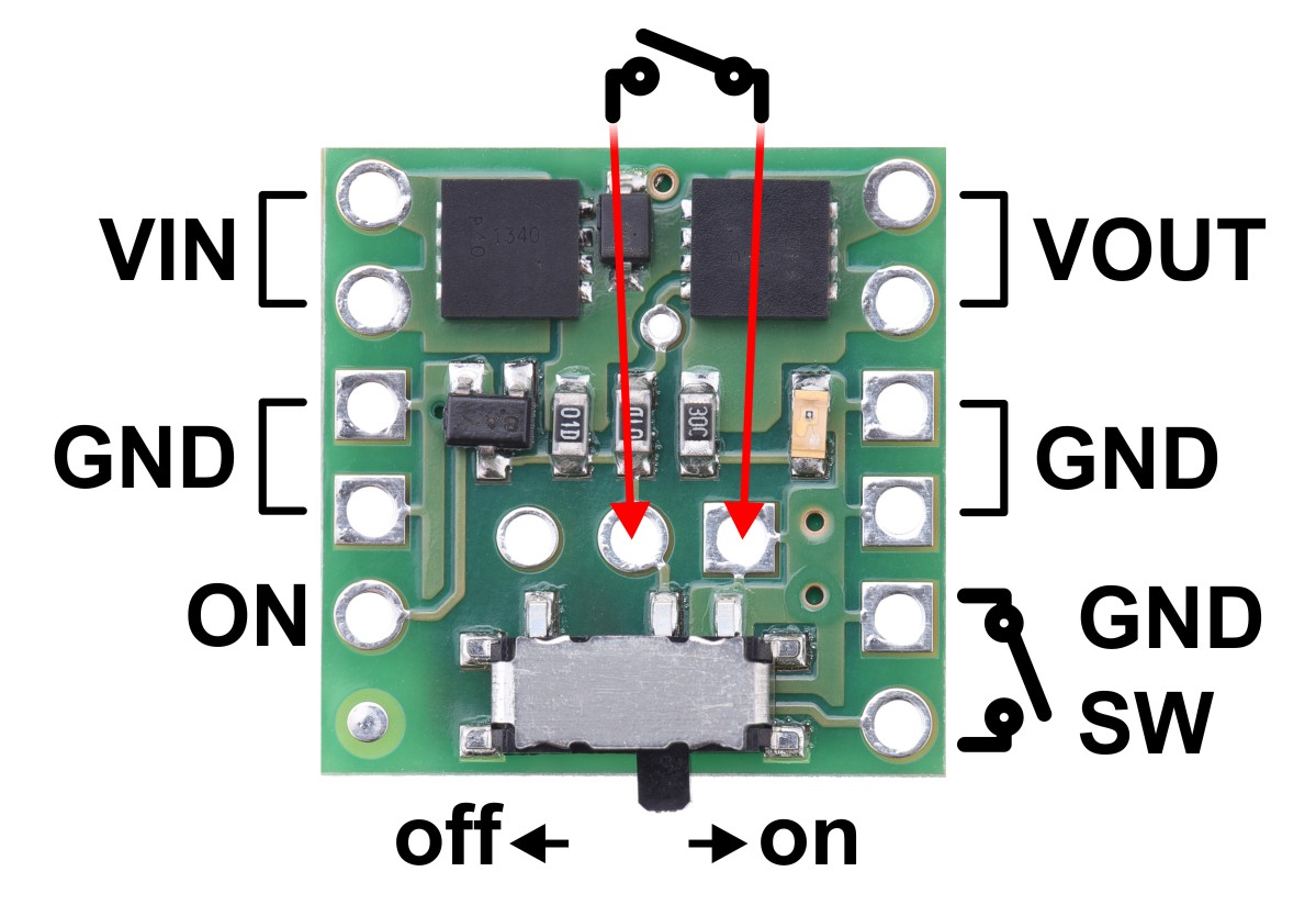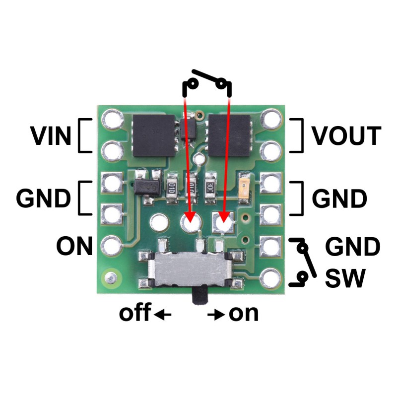 Unlike the Pololu Pushbutton Power Switches, which can lose their state when power is disconnected and reapplied, the conducting state of the MOSFET Slide Switches is determined only by the physical control switch (or a signal supplied to the “ON” pin), independent of power applied to the board. This can make them more appropriate for applications where the supplied power may be intermittent.
